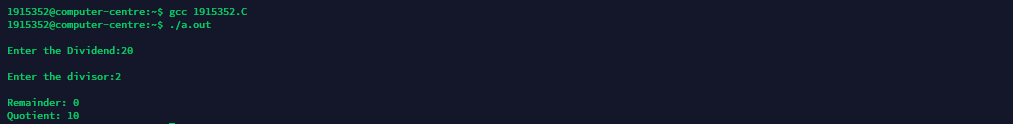 /* To find quotient and remainder */#include<stdio.h>intmain() {