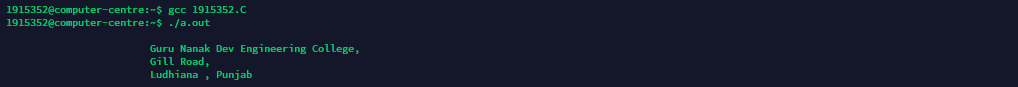 printf("\n\t\t\tLudhiana , Punjab\n\n");