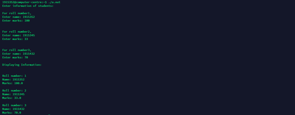 32) Program to store information of 10 students using array of structures.