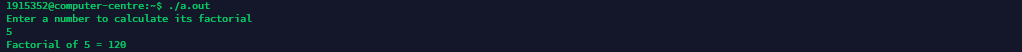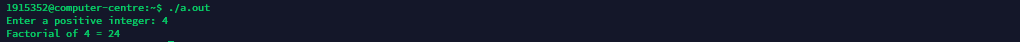 printf("Factorial of %d = %d\n", n, fact);