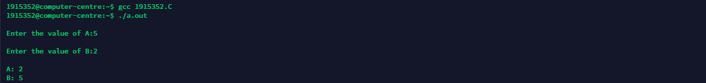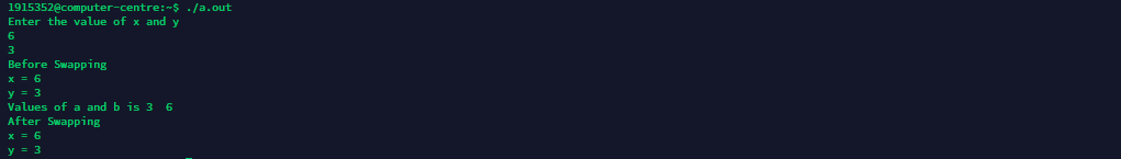 printf("Values of a and b is %d %d\n",a,b);