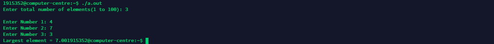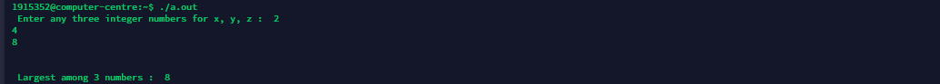 printf("\n\n Largest among 3 numbers : %d\n", large) ;