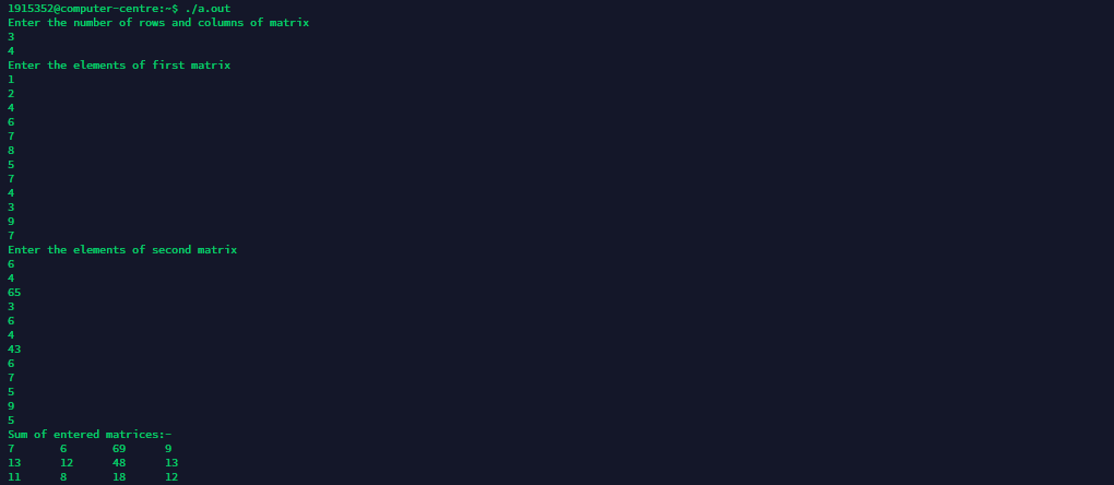 /* To add two integers */#include<stdio.h>intmain() {