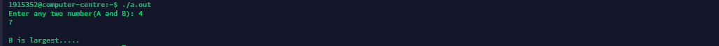 /* Largest one in two */#include<stdio.h>intmain() {