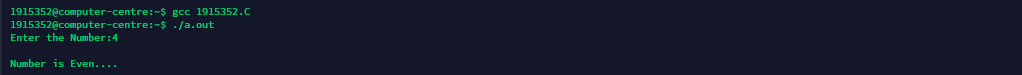 /* To find whether number is even or odd */#include<stdio.h>intmain() {