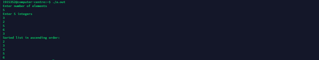 printf("Sorted list in ascending order:\n");