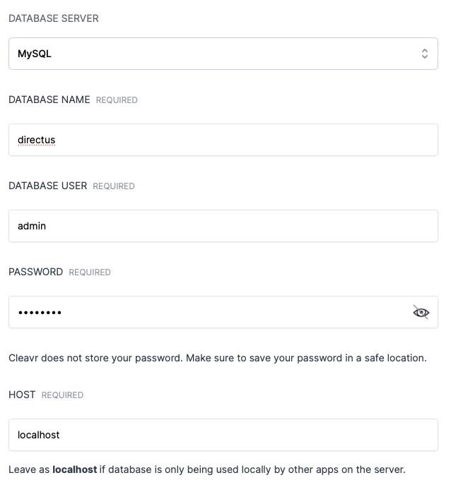 On a new server in your cleavr.io account, add a new site and select Directus as the app type.