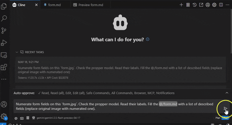 form.jpgwithfoduucom/web-form-ui-field-detectionmodel and fill theform.mdwith a list of described fields"π Hint: Specify the model and the confidence".