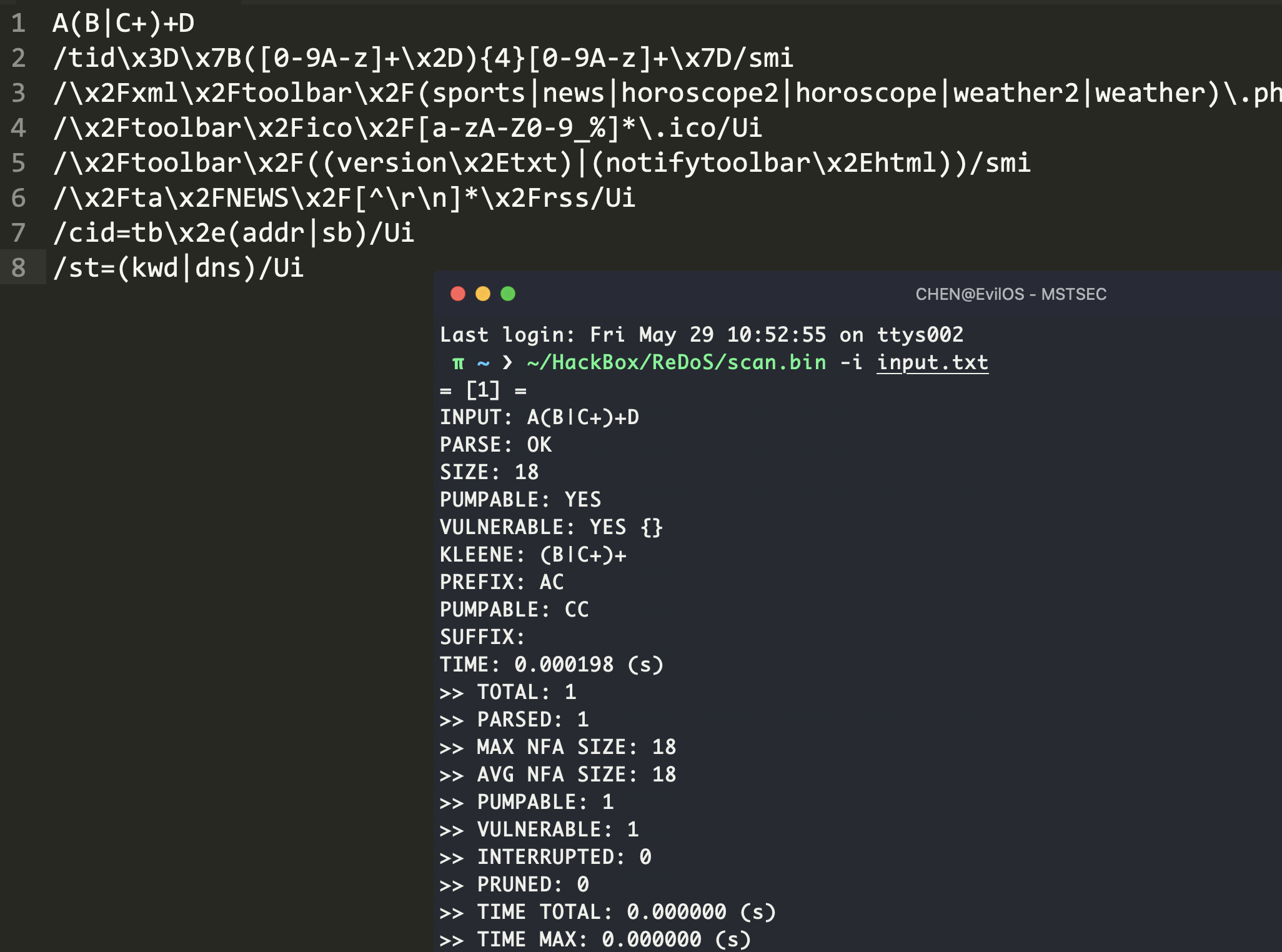 ./scan.bin -i input.txt, it just output one result: