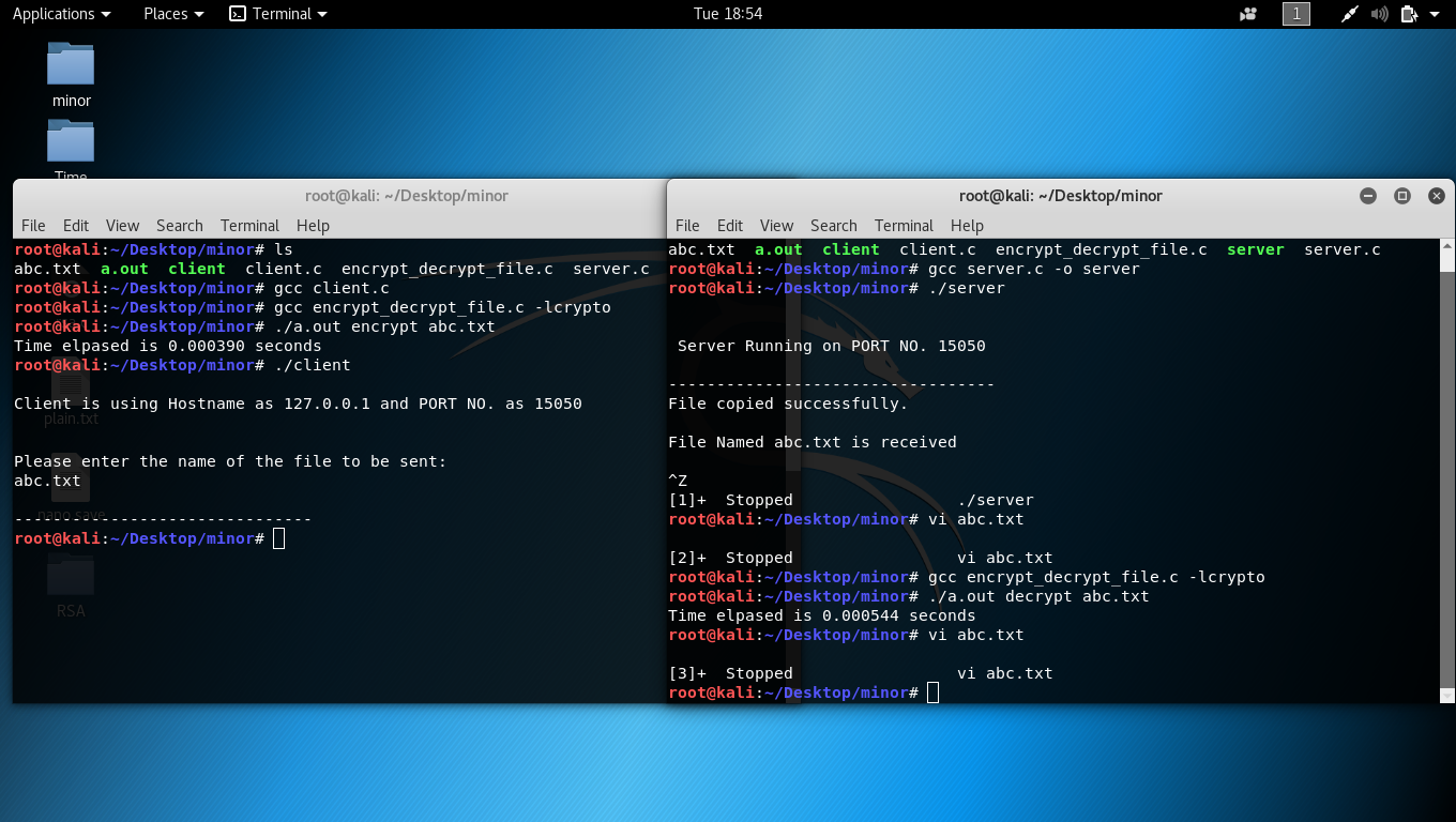 We developed a channel to transfer files securely, using key based encryption methods and comparing the different methods on Linux based OS. The sub-objectives incidental to the main objective are: