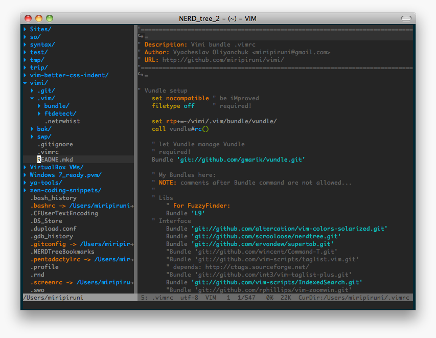 $ git clone git://github.com/miripiruni/vimi.git ~/.vimi && cd ~/.vimi && make