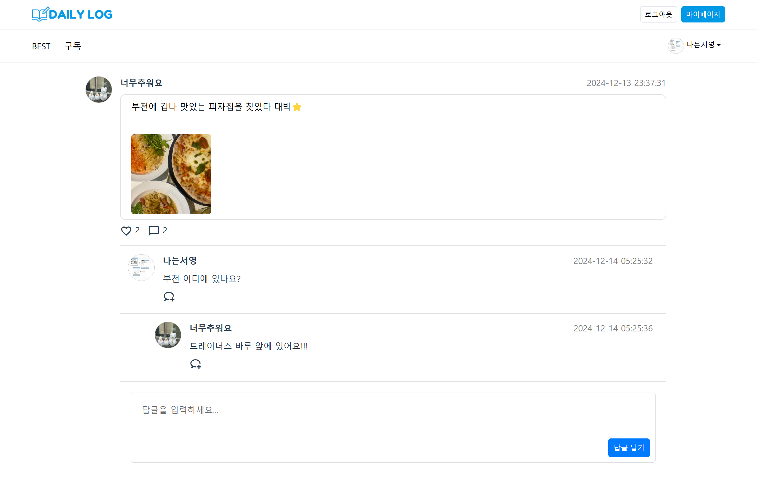 DailyLog는 사용자가 자신의 일상을 기록하고 공유할 수 있는 SNS 플랫폼입니다.