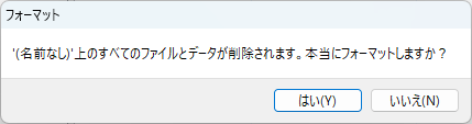 「はい(Y)」を選択してフォーマットする