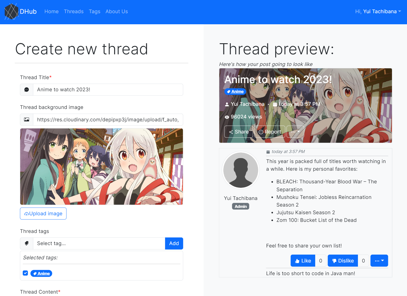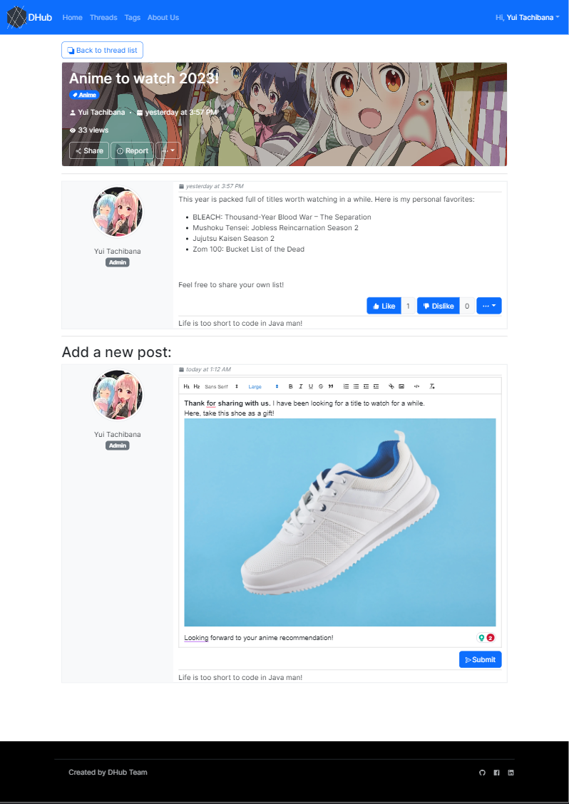 DHub was created from an assignment for my React Front-end development course. I find this is a great project so I upgrade and refine it to a fully fledged website with proper database and authentication. You can host your own DHub by following the instruction below. I hope you have a fun time using DHub!