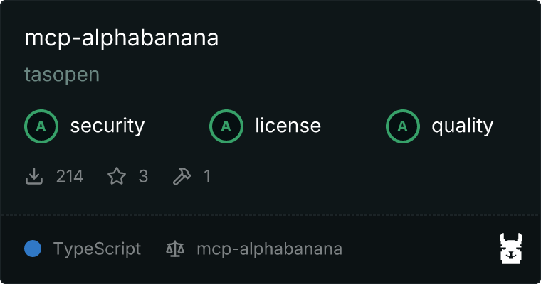 mcp-alphabanana is a Model Context Protocol (MCP) server for generating image assets with Google Gemini. It is built for MCP-compatible clients and agent workflows that need fast image generation, transparent outputs, reference-image guidance, and flexible delivery formats.