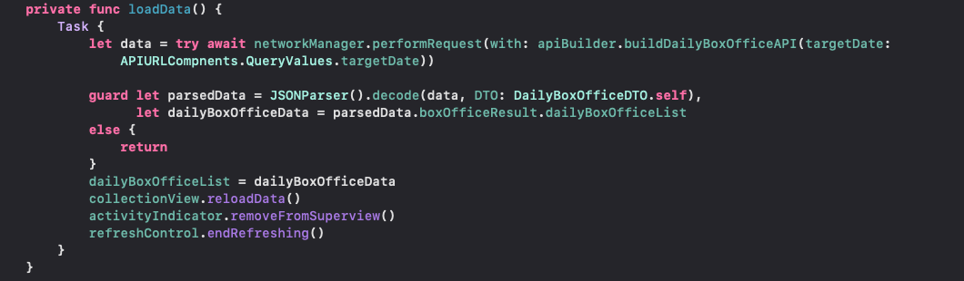 | guard let parsedData = JSONParser().decode(data, DTO: DailyBoxOfficeDTO.self), | ||