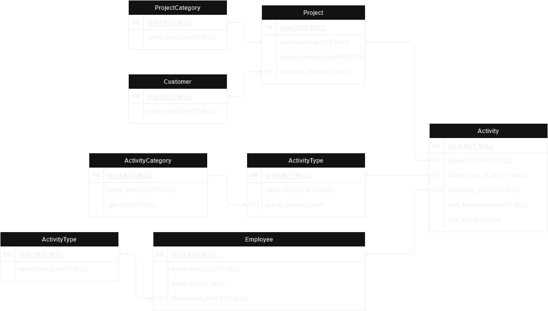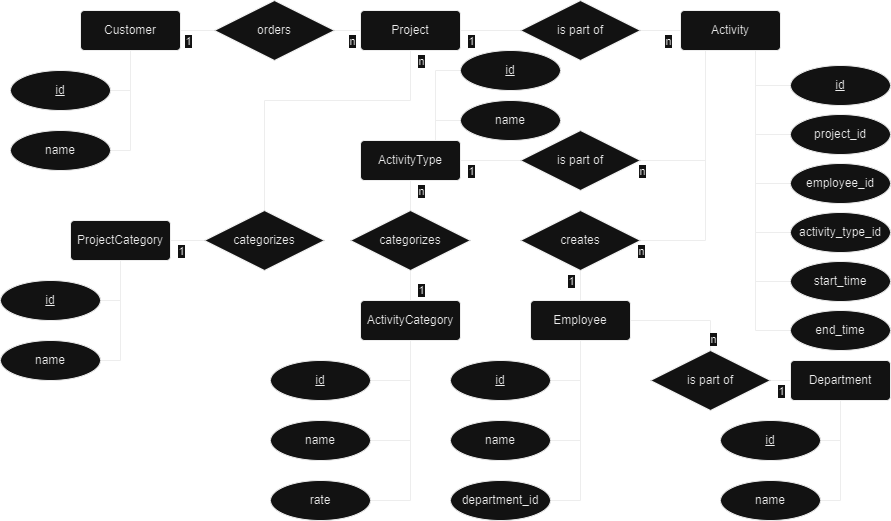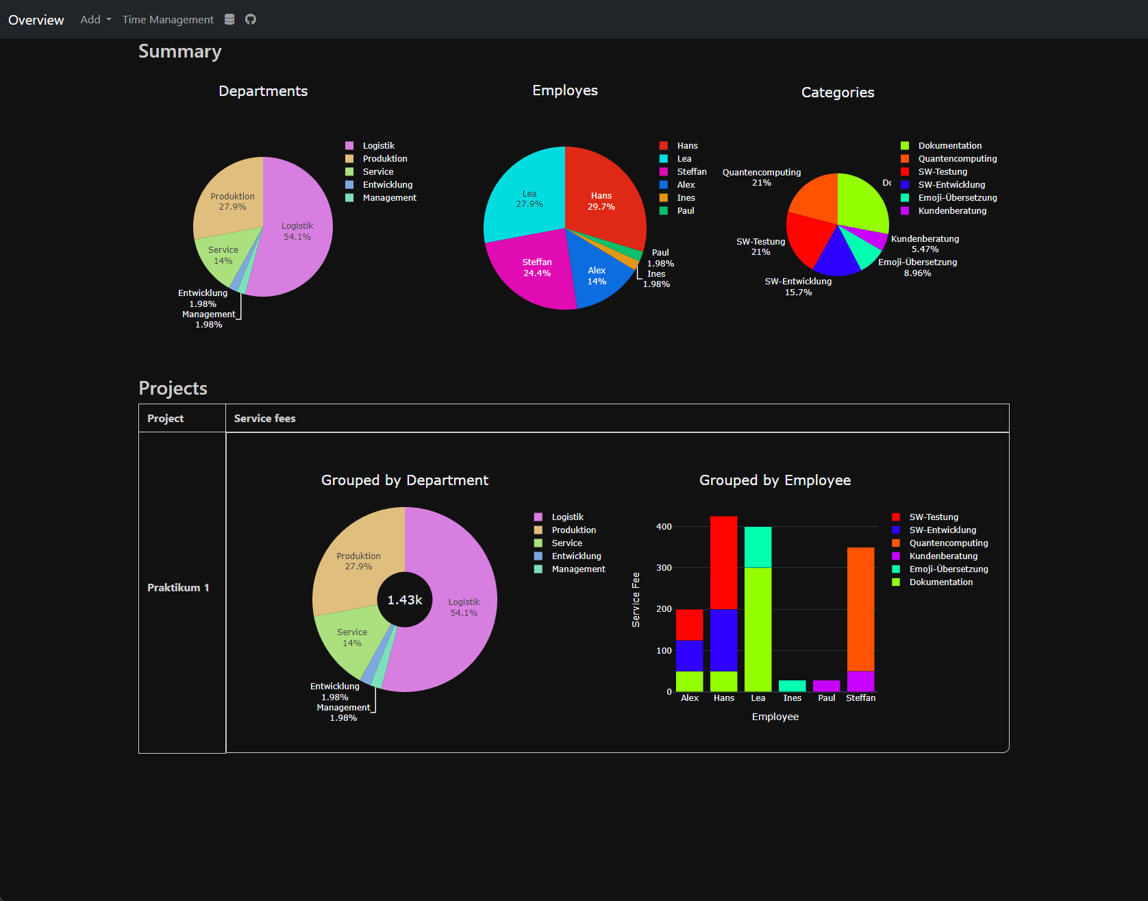 The goal is to create a database for documenting the time spent on projects. ➔ Who did what, when, and to what extent for which project?