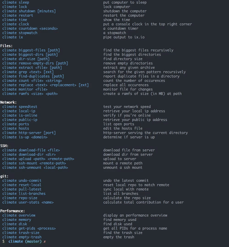 climate provides a huge number of command line options for developers to automate their Linux system.