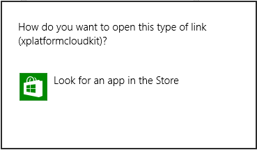 On Windows 8 desktop press "Windows Key + R" and type "xplatformcloudkit:" => select OK => Click "Look for app in Store"