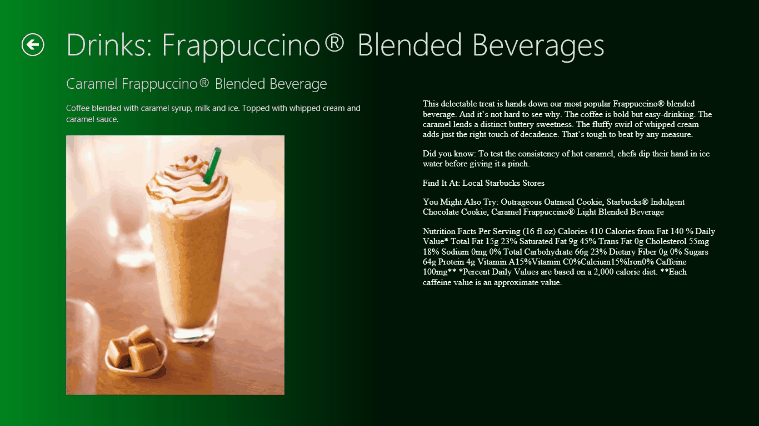 Starbucks Menu Windows 8