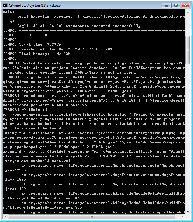 An Ant BuildException has occured:taskdef class org.dbunit.ant.DbUnitTask cannot be found  或者说这么好的项目有没有能直接导入的sql文件