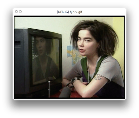 $ wgif https://www.youtube.com/watch?v=1A78yTvIY1k bjork.gif --start 00:03:30 -d 2 -f 18 --previewYou'll see a preview pop up in a Quick Look window like this one: