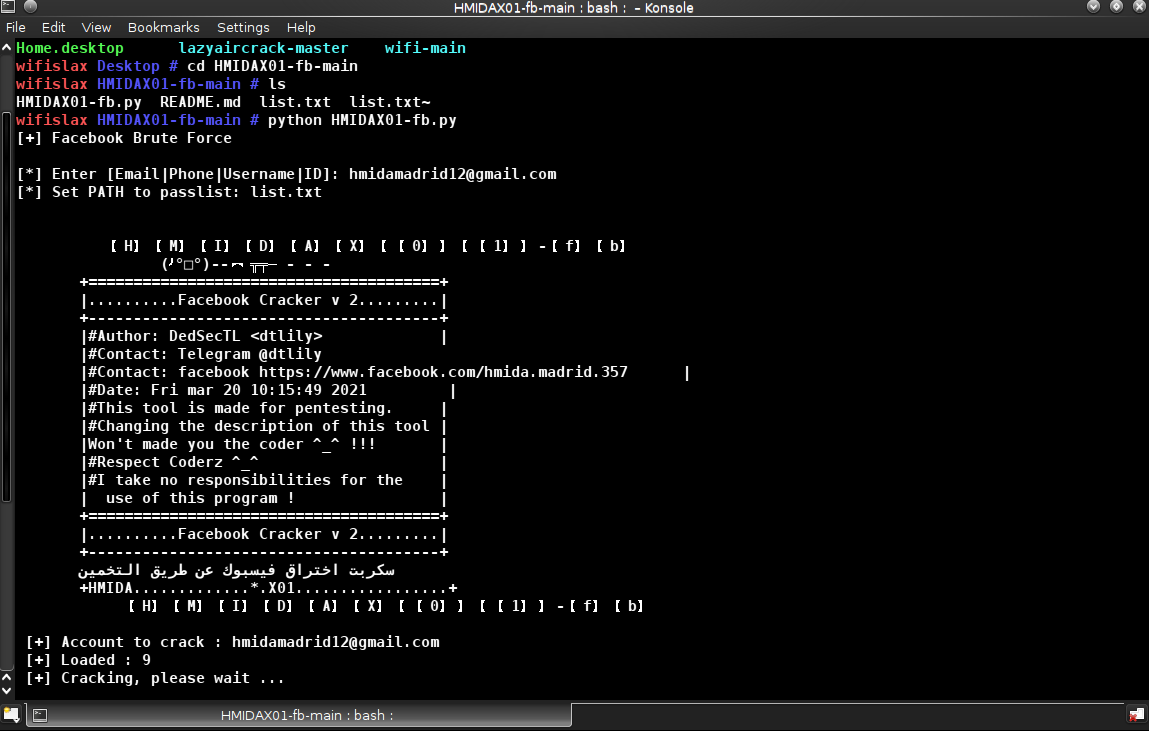 When you download the script, you must delete the README.md file in order for the script to work عندما تقومون بتحميل السكربت يجب عليكم بمحوا ملف README.md لكي يشتغل الاسكربت And he started working It is a script that makes guessing on the password