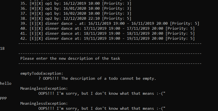 After leaving the description blank for a todo task, the description was typed but it actually is reading a command. Same for each layer of the multi-step command.