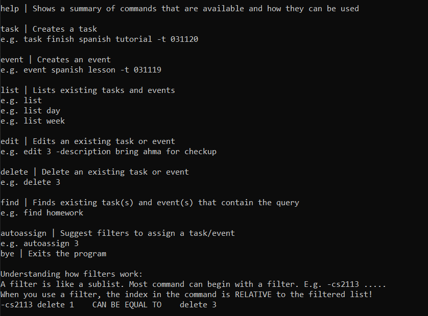 A better help page with the different types of inputtable commands would be better as it is still pretty unclear now.