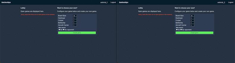 - Players can place their ships and signal their readiness by pressing the "start game" button. The game does not initiate until both players are ready.