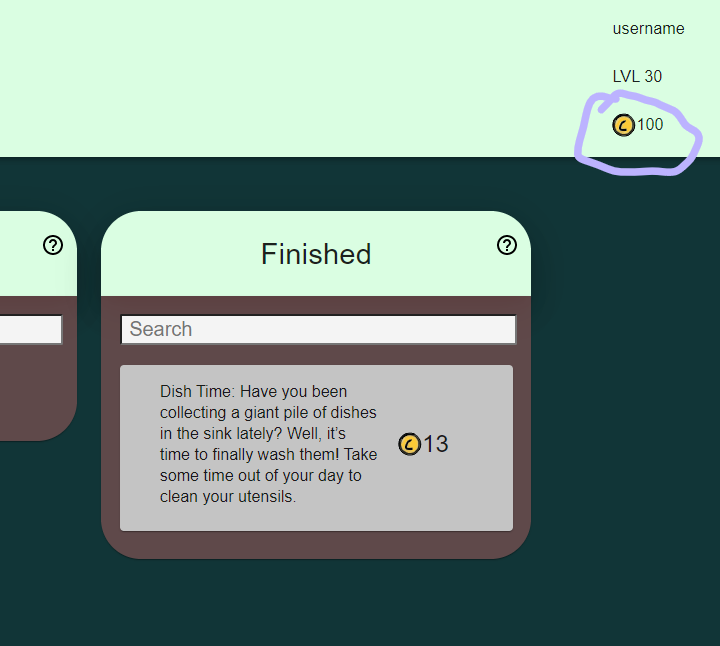 EcoBeat should send you to drag and drop homepage, acting like a text button.  Update coin balance when card is dragged into Finished.