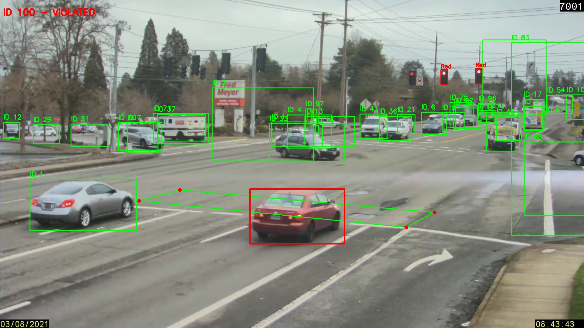 red_light = True # Activate violation monitoring# Format YOLO detections for DeepSort: [x, y, w, h]