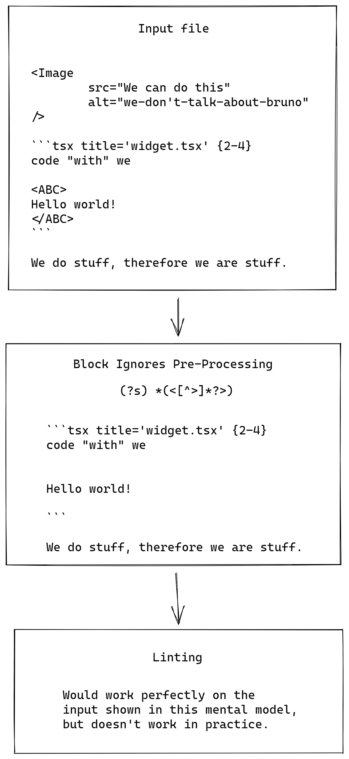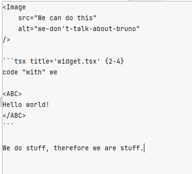 Hey there! I'm currently trying (unfortunately struggling) to set up Most things are working pretty well, but we use some custom MDX Components I'd like to ignore using Thank you so much in advance for any help you may be able to provide 👍 🙂 . I've literally been sitting on this problem for over twelve hours now, trying to wrap my head around what's going on (unfortunately, I don't know Go enough to really figure out what's going on) 🙈 The MWE