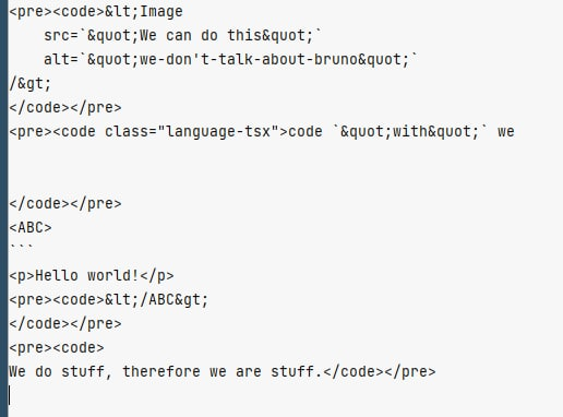 tl;dr: The solutionUsing four backticks for code blocks instead of three backticks makes the