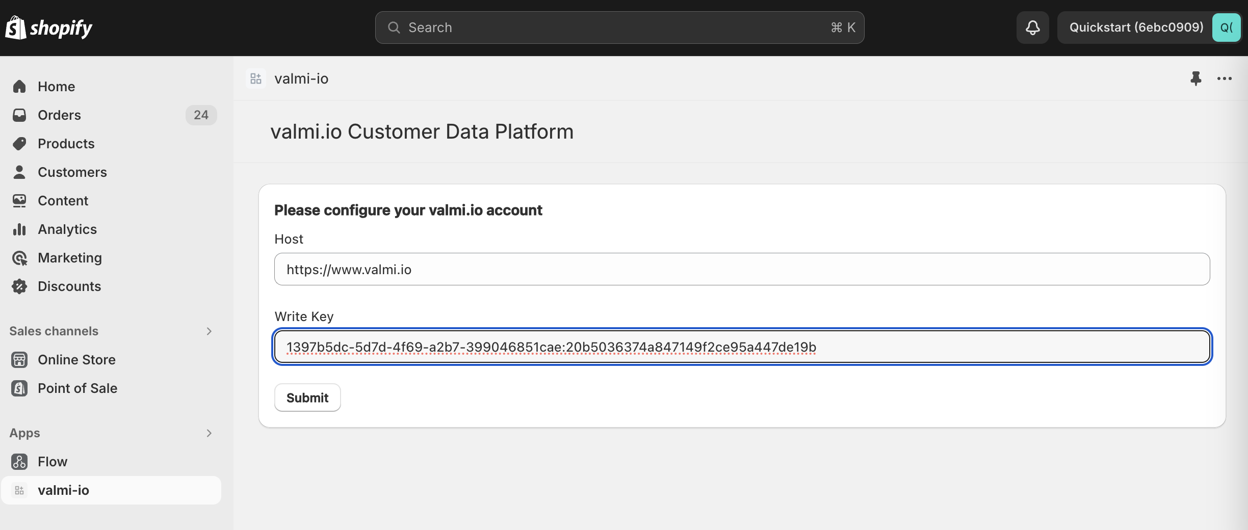 ./valmi prod --with-jitsu- To stop the service, run the following.