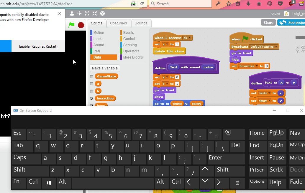 When you right click something like a block in scratch.mit.edu (which uses flash), you cannot input text. You have to log out of Master Password +, and log back in to fix it. It's very annoying to do.