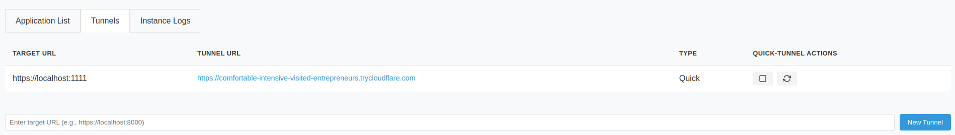 - Create new 'quick tunnels' to any local port