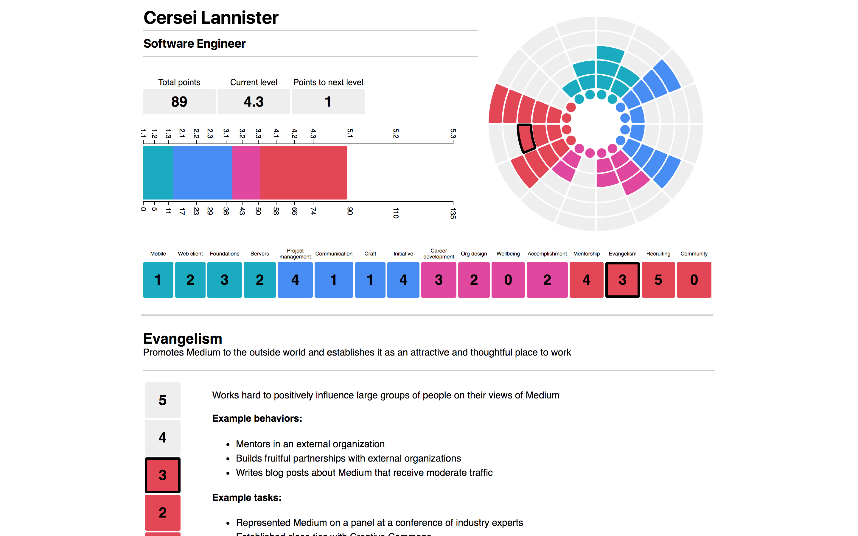 Snowflake is Medium's tool for planning and supporting our engineers' career development. You can read more about how we use this tool in our growth framework documentation. Our growth tool is hosted publicly.