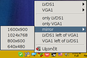 Dual monitor manager for Linux with GTK based user interface represented by system tray icon's context menu.