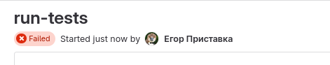 Как мы видим, пайплайн провалился из-за непройденного теста.В таком случае ни деплой ни дальнейшее слияние веток не является возможным.