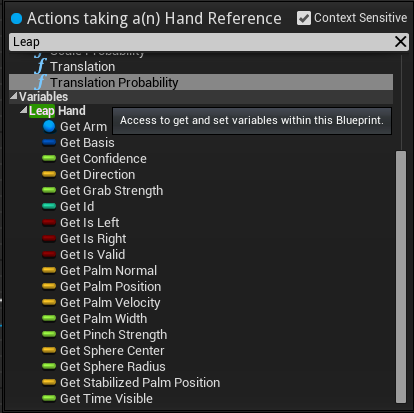 - Option B, (Optional, recommended) Drag from the return value, save this as a blueprint variable e.g. Leap.