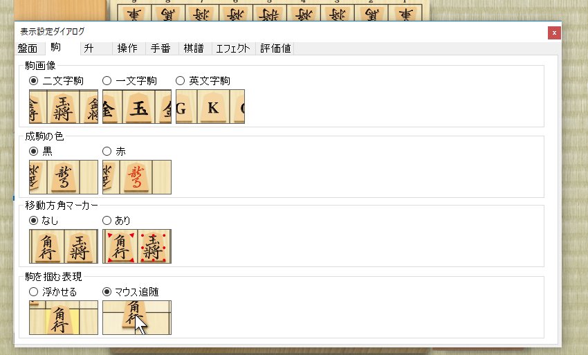- 後手の駒の成り・不成のダイアログ、駒、キャンセルの文字を180度回して表示する機能。