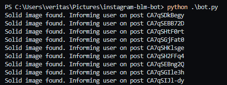Instagram bot that informs users using the BlackLivesMatter tag to post solid images that they may be accidentally hiding important information about the movement.