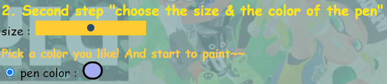 原本是用輸入的方式讓使用者直接輸入色碼、筆刷大小,但由於我認為那太不直觀了,所以換成可直接調色的版本!! 至於筆刷大小就使用拉的來調整。