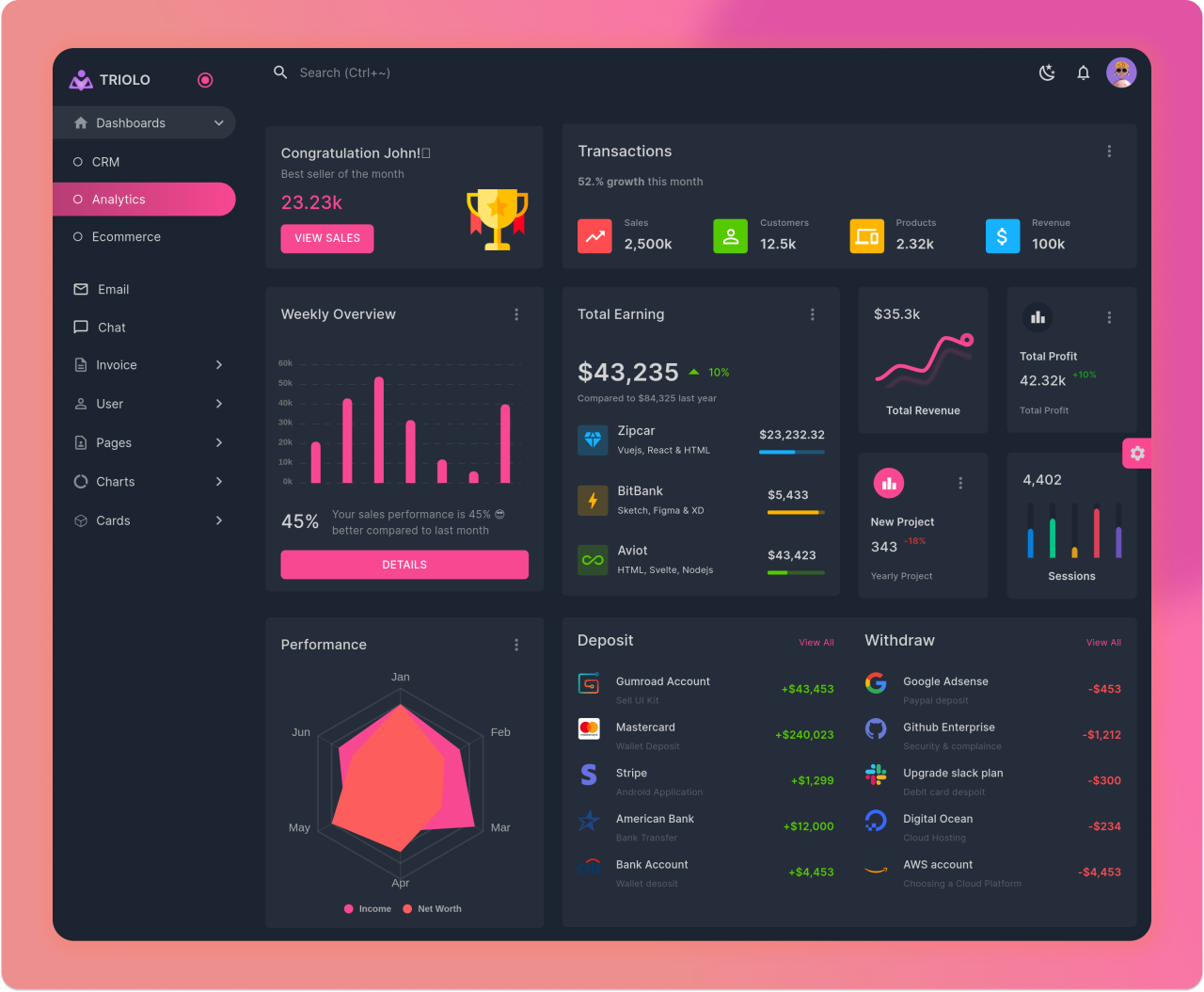 This is a static admin dashboard mockup/clone from Materio Theme. This has been built for learning purpose specifically focus in Reactjs. Feel free to use this project if you might find it usefull to you.