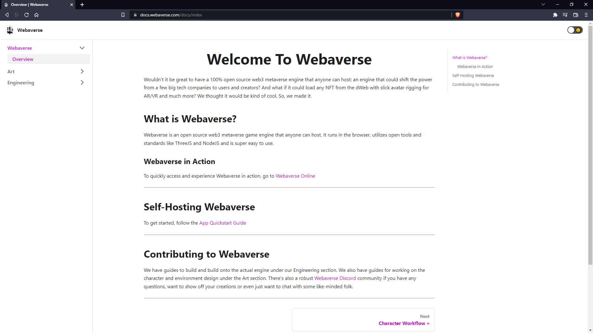 Welcome traveler! Our current mission is to work together on improving the templates and documentation for Webaverse. Through this activity we will also learn how to use Dework and coordinape, two powerful web3 tools, which will aid our journey in overcoming some of the toughest challenges when building the foundations of an open metaverse. Lets begin!