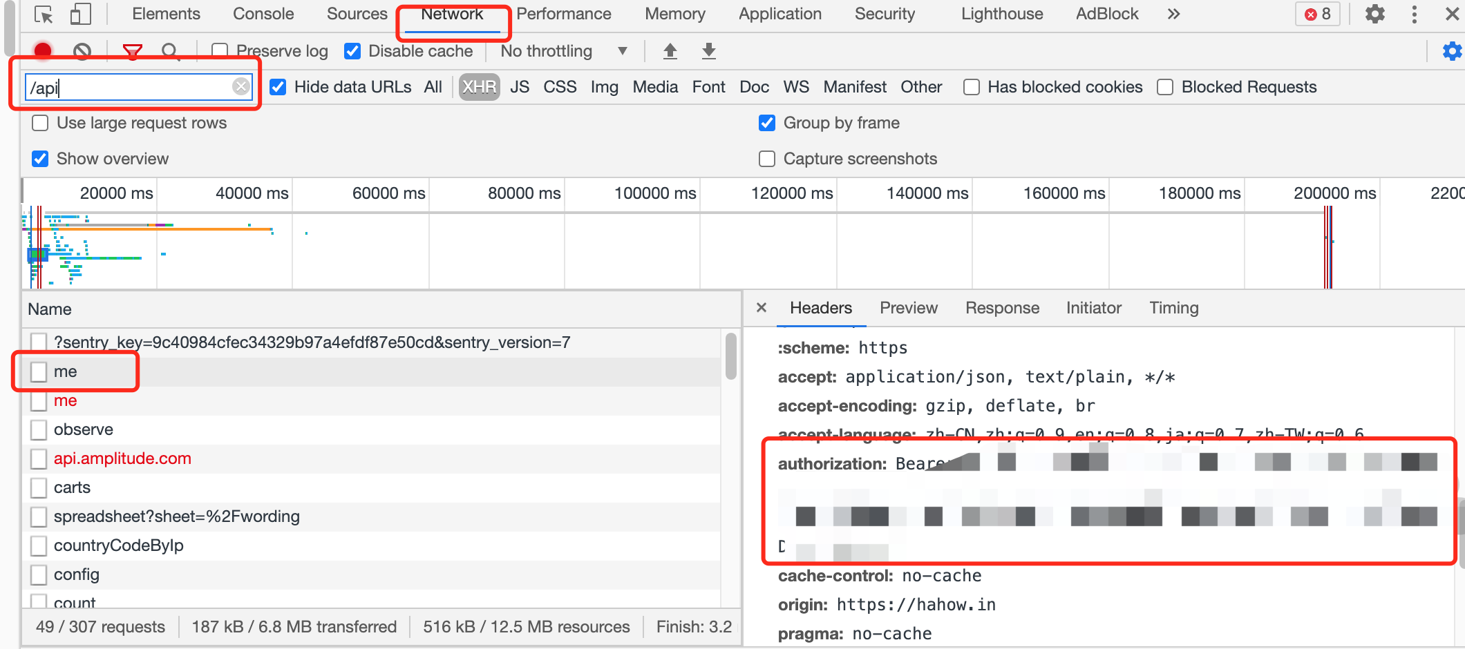 hahow-video-downloader 一键下载好学校hahow.in课程视频 Usage Node.js 版本: 14.x change config.json.sample to config.json and fill in the configuration brew install yarn or npm install --global yarn yarn run node index 获取authorization配置 复制图中authorization: 后的字符串到配置文件即可