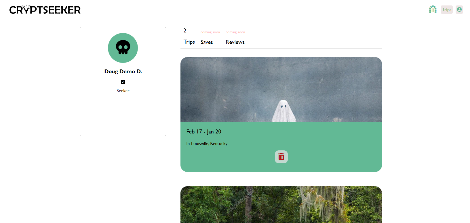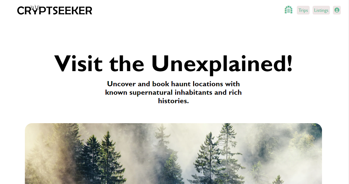 CryptSeeker is a React/Redux/Express clone of HipCamp, but for those interested in staying in supernatural places. There are some good ole fashioned Haunted Hotels, Cryptid hideaways, mysterious spaces, and otherwise supernatural places!