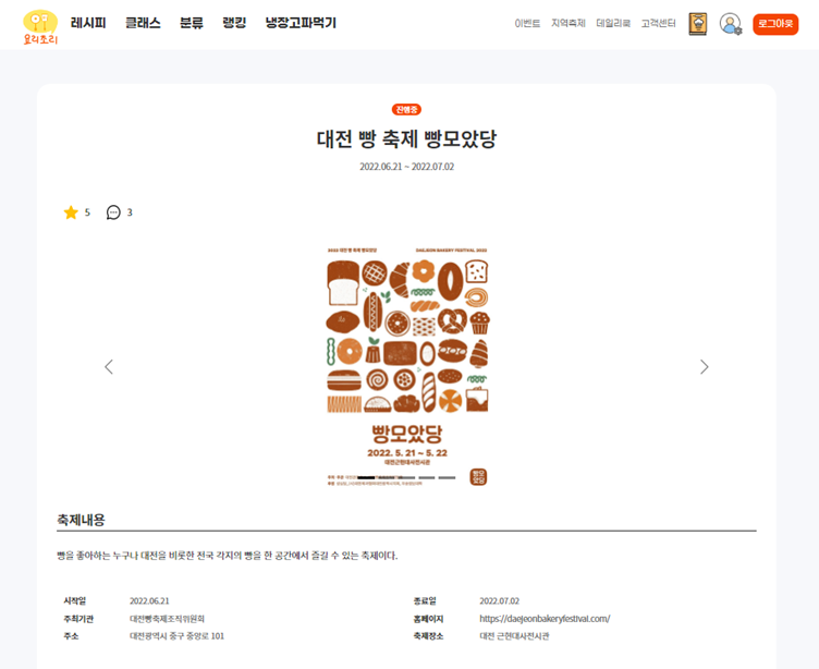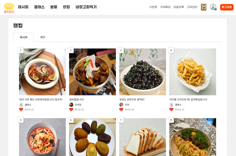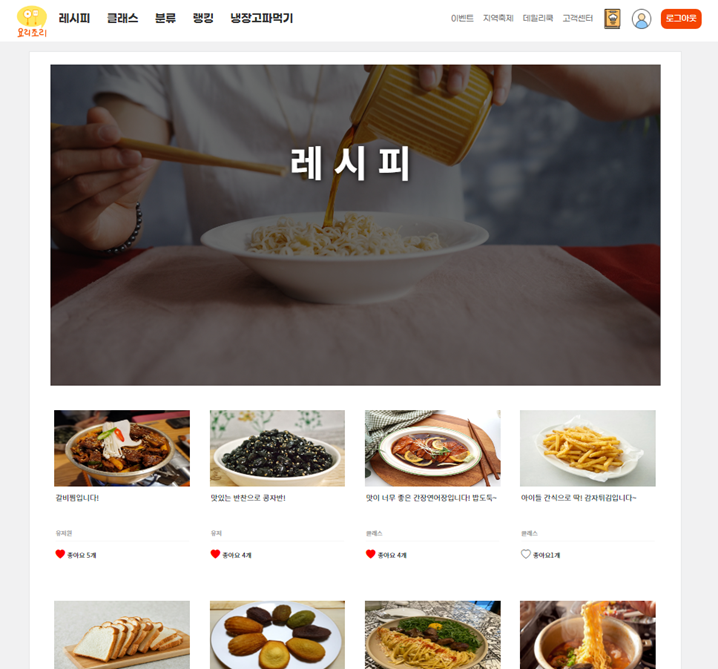 - ๋ ์ํผ ์ฌ์ง ๋๋ ์ ๋ชฉ์ ํด๋ฆญ์ ํด๋น ๋ ์ํผ ์์ธ ํ์ด์ง๋ก ์ด๋ํฉ๋๋ค.