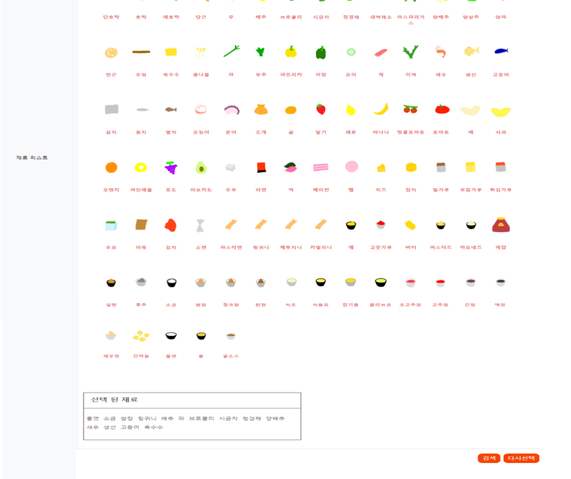 - ์ ํํ ์ฌ๋ฃ๋ฅผ DB์ ์ ์ฅ๋ ๋ ์ํผ์ ์ฌ๋ฃ์ ๋์กฐํ์ฌ ์ฌ๋ฃ๊ฐ 3๊ฐ ์ด์ ์ผ์น ์ ๋ ์ํผ๋ฅผ ์ถ๋ ฅํ๋๋ก ํ์์ต๋๋ค.